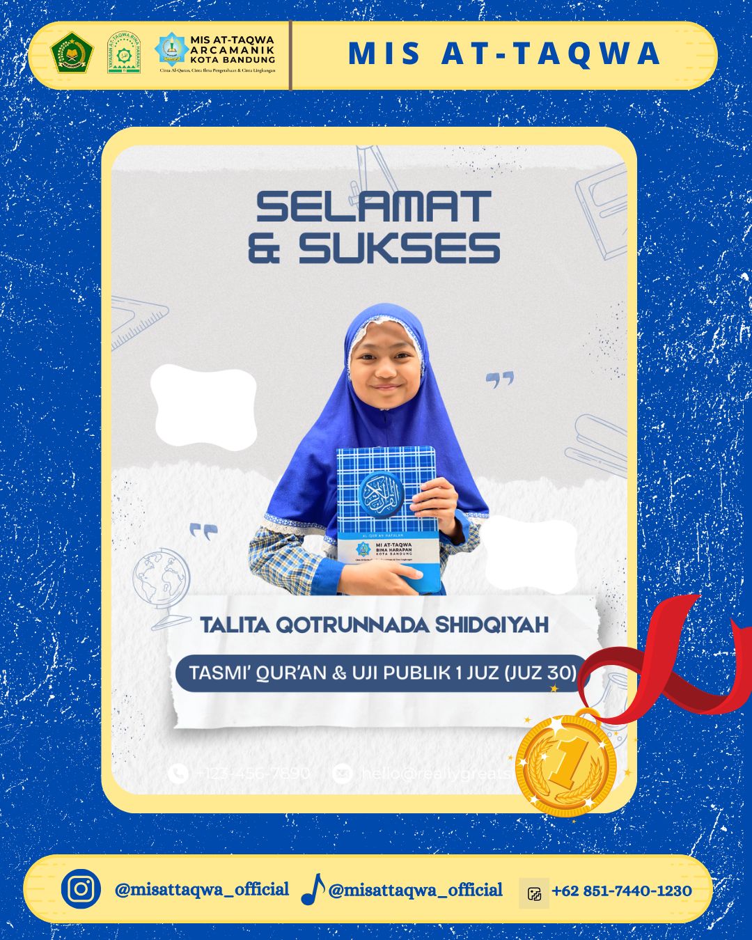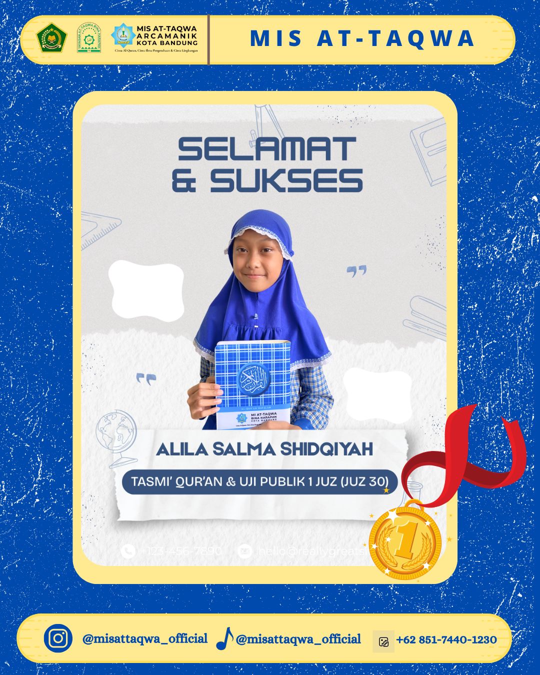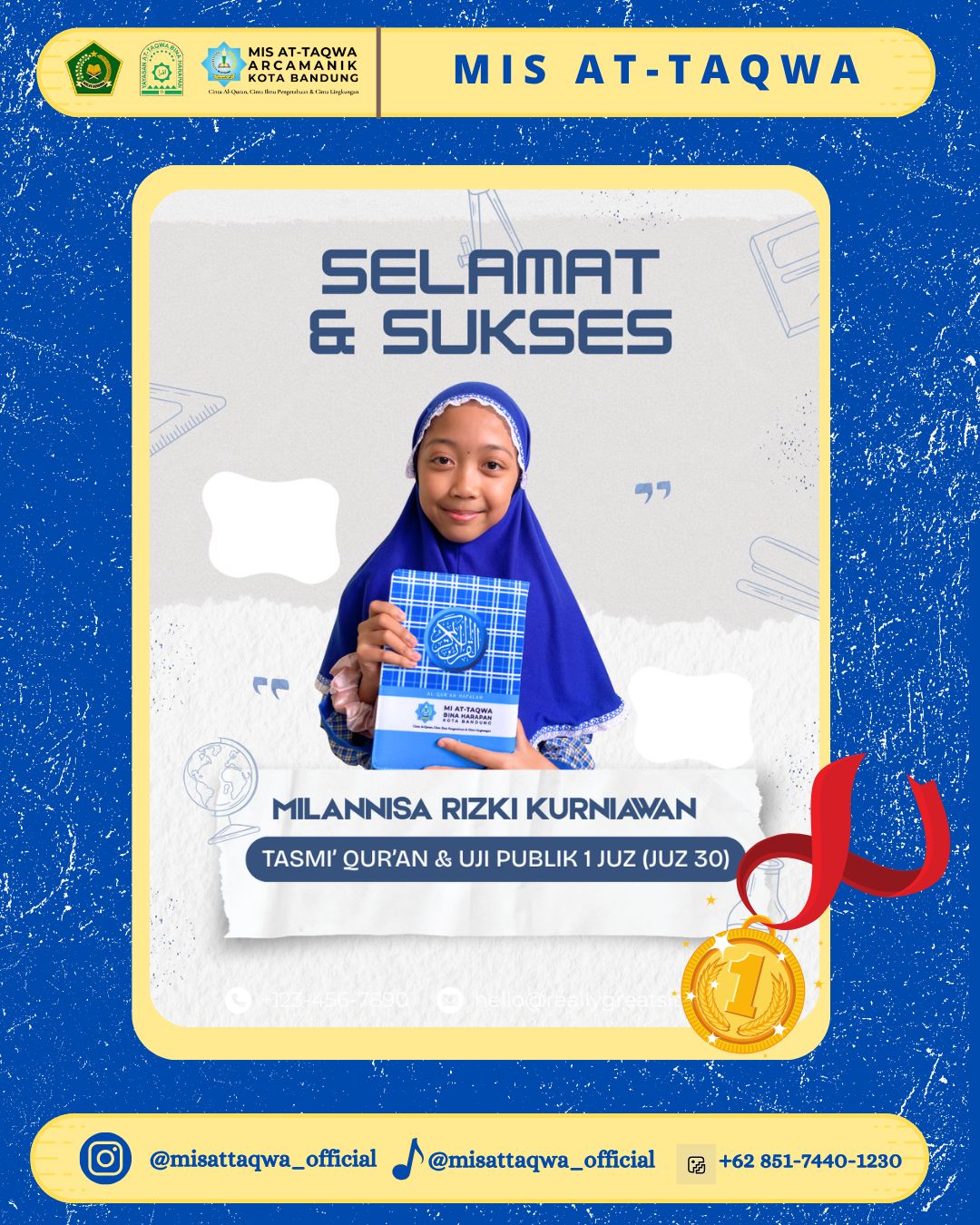 Keberhasilan siswa siswi dalam menyelesaikan Tasmi’ dan Uji Publik Juz 30 ini menunjukkan dedikasi, ketekunan, dan kerja kerasnya selama proses menghafal. Pencapaian ini juga tak lepas dari peran serta bimbingan para guru Tahfizh di MIS At-Taqwa serta dukungan penuh dari orang tua siswa.